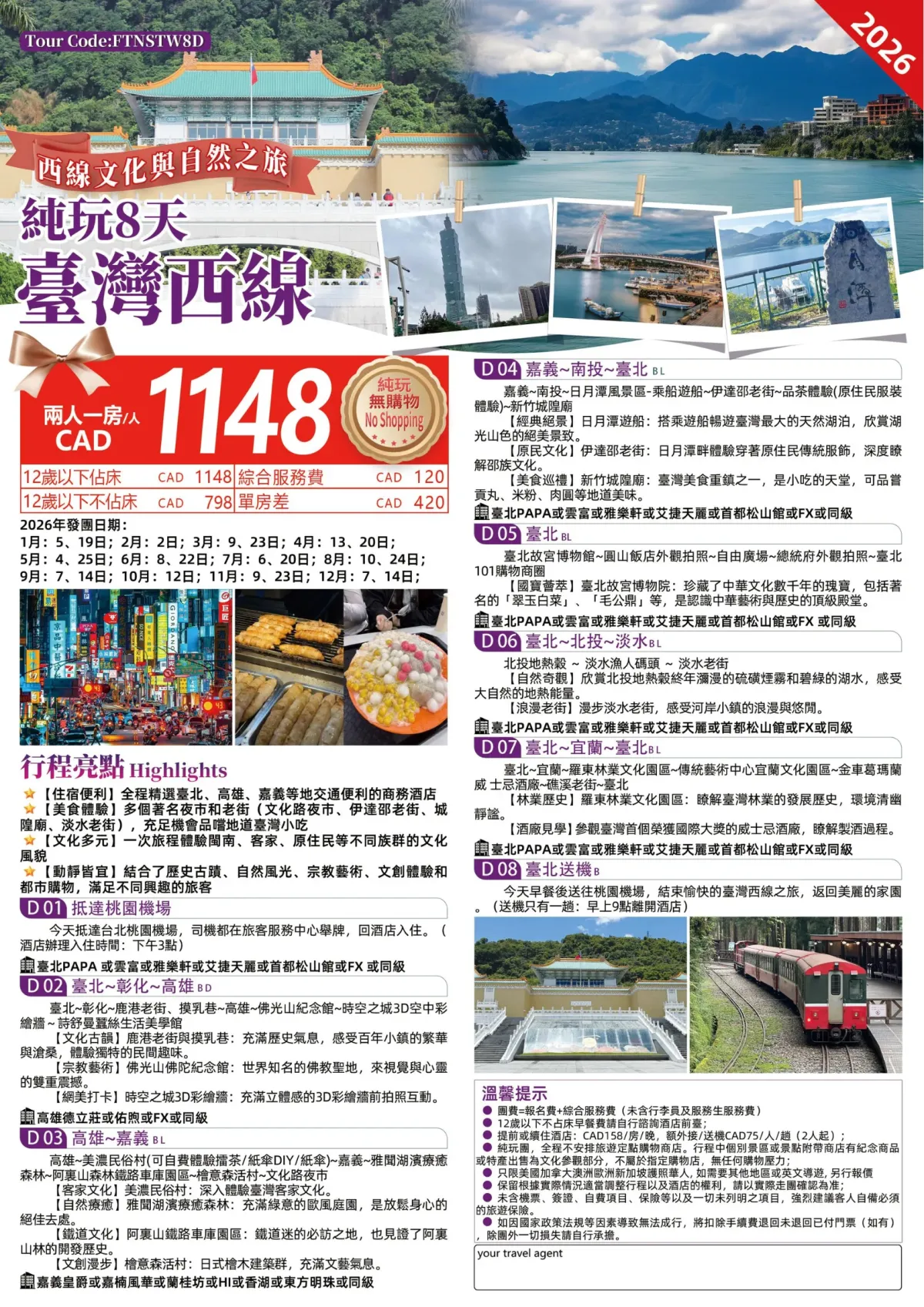 【纯玩团】台湾西线8天
