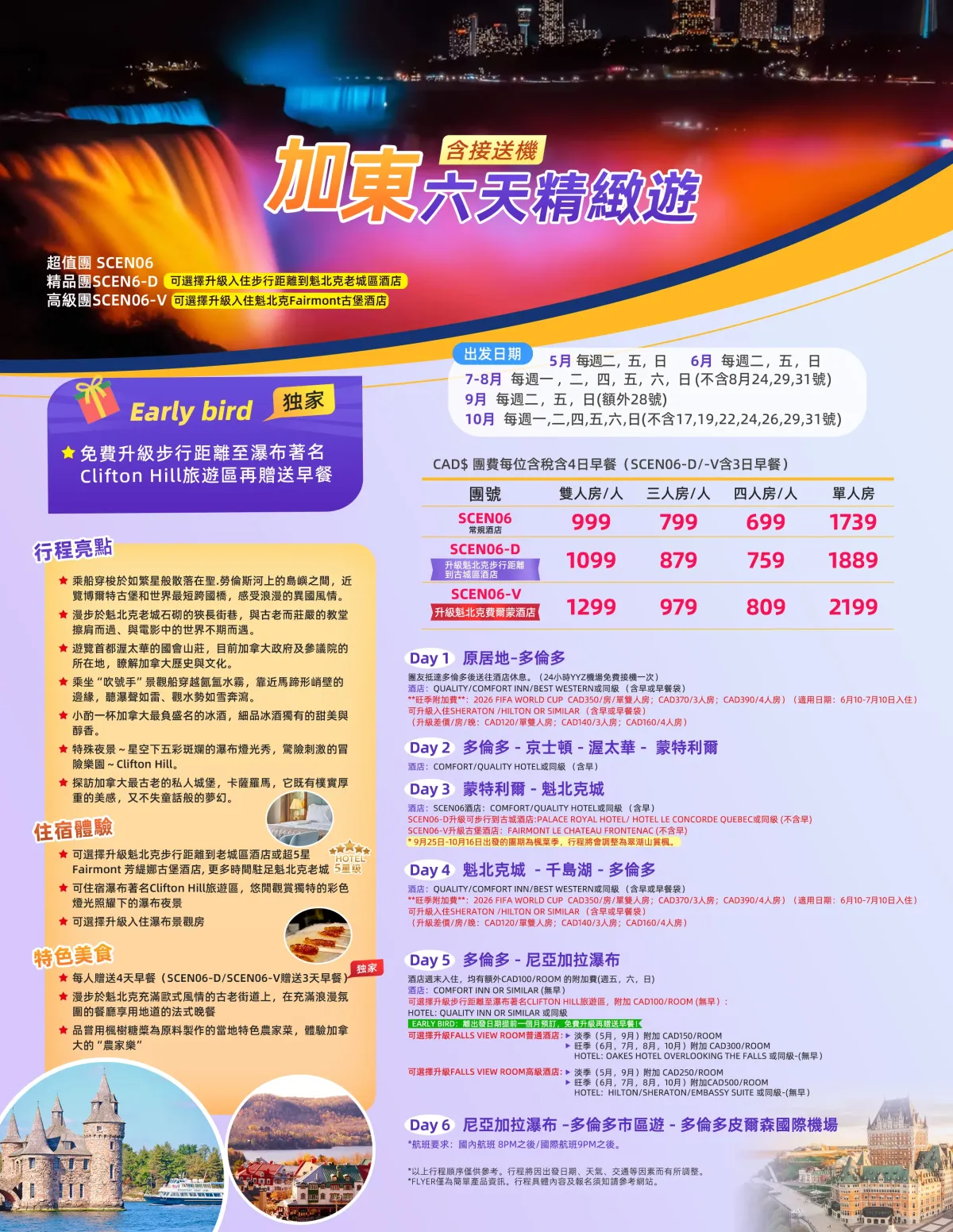 **魁北克/多伦多有升级酒店选项**(升级酒店需两次确认)