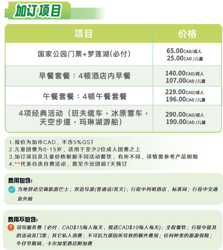 - 根据活动项目时间,抵达班夫时间可能会有变化,敬请理解。