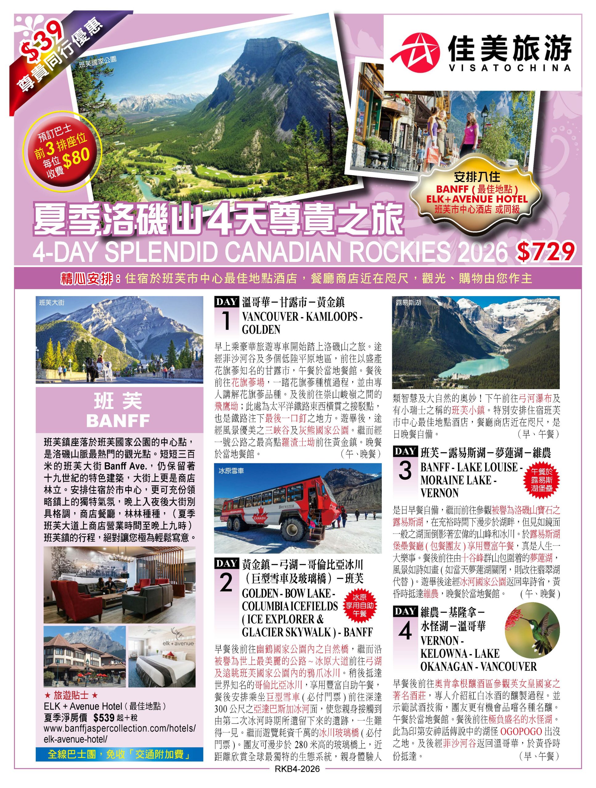 2026 温哥华出发夏季落基山四天尊贵之旅