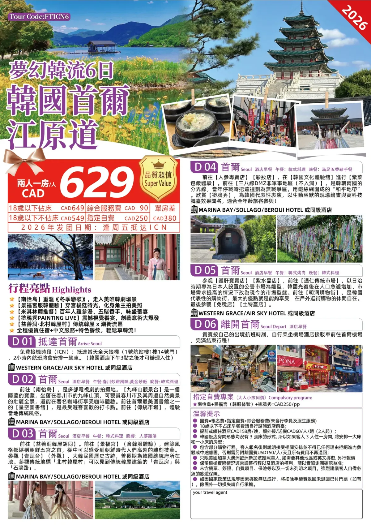 【超值游】品味韩国六天五晚